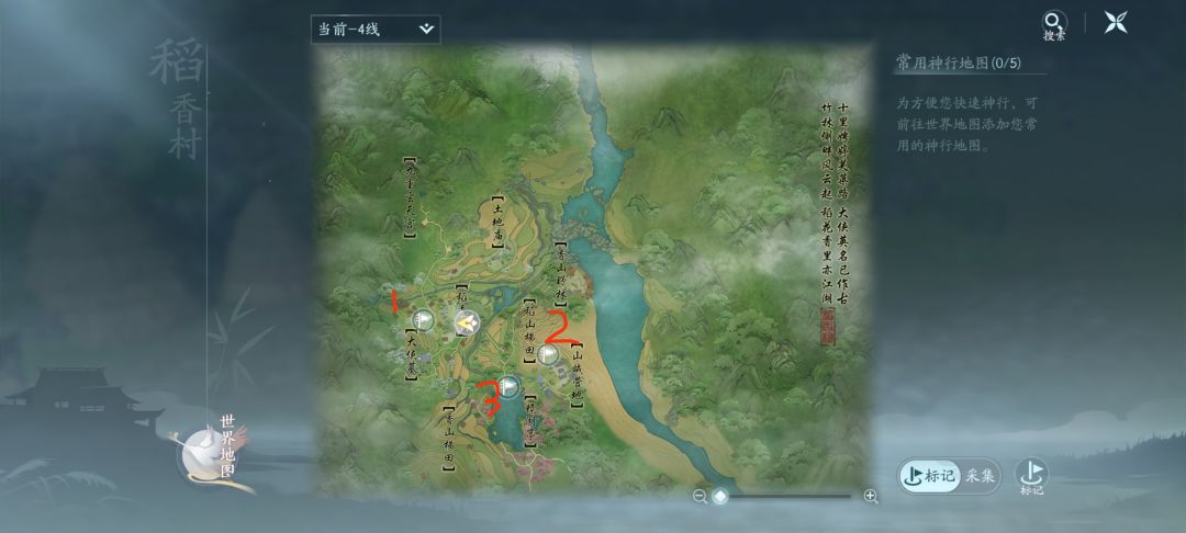 任务NPC大概位置,1是NPC“疯子”,他会在路上走来走去,只用在这个点位等他就行, 2是禅师的位置 3是顽童的位置,记得先去王大婆那买串糖葫芦,这样去找顽童他才会告诉你