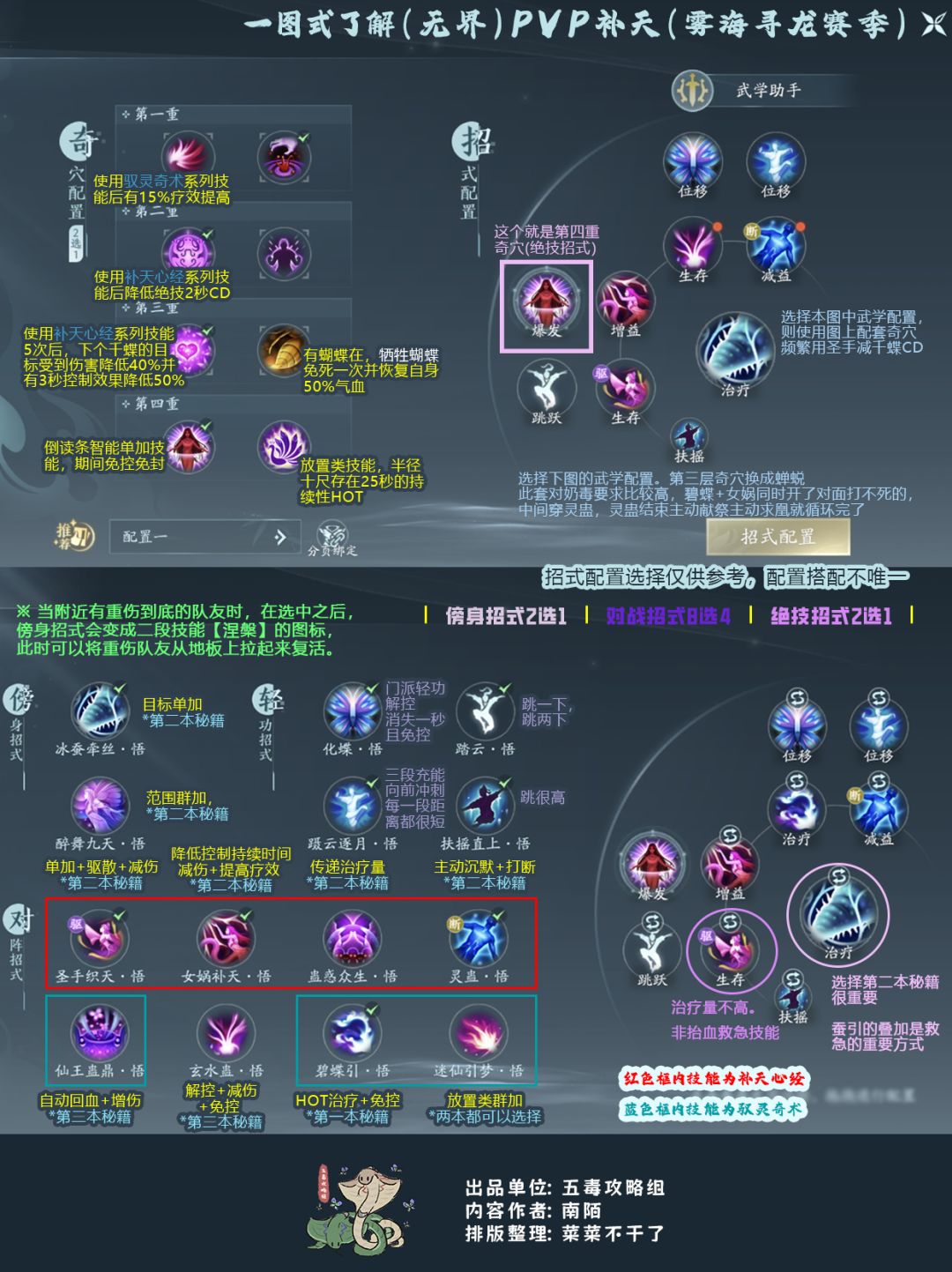 #PVE补天 # 作者:角角 #PVP补天 # 作者:南陌 ———————————————— 本篇内容基于“雾海寻龙”游戏版本 所有数据皆应以游戏数据为准 攻略内容仅供参考并非绝对 如有疑问&错误欢迎指正提出 谢绝一切形式的讨论字典研究生命的意义 攻略版权归攻略组作者所有请勿随便改动转载 #剑网3无界攻略 #剑网3五毒 #剑网3无界 #游戏攻略