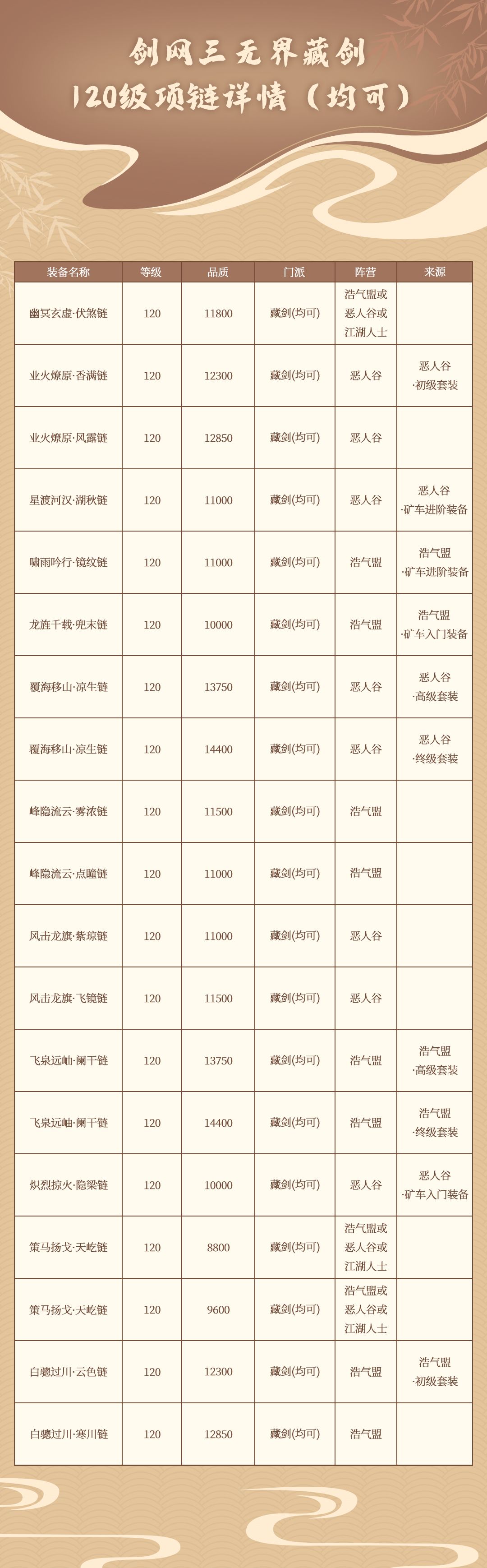 《剑网三无界》藏剑120级项链详情 (均可)