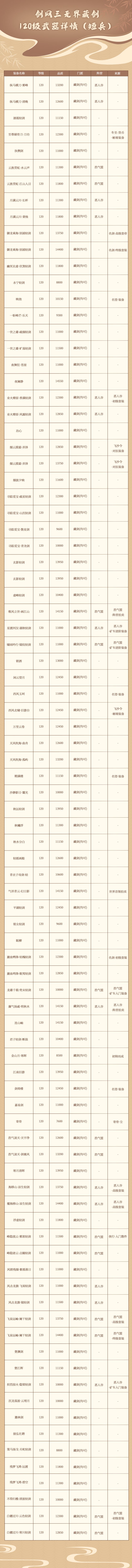 《剑网三无界》藏剑120级武器详情 (短兵)