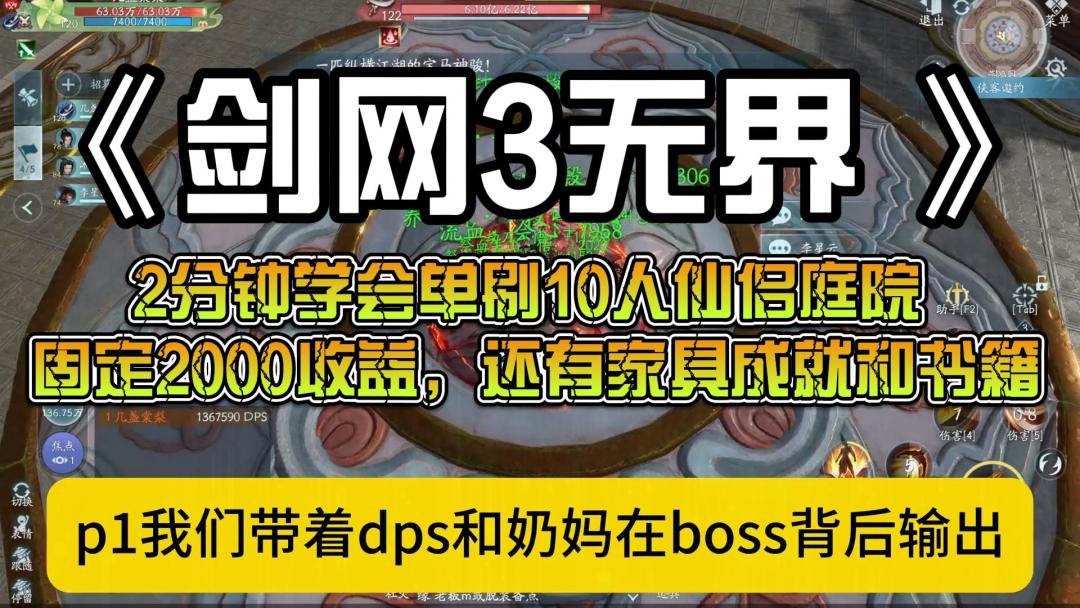 剑网3无界:2分钟学会无界单刷10人仙侣庭院 固定2000收益