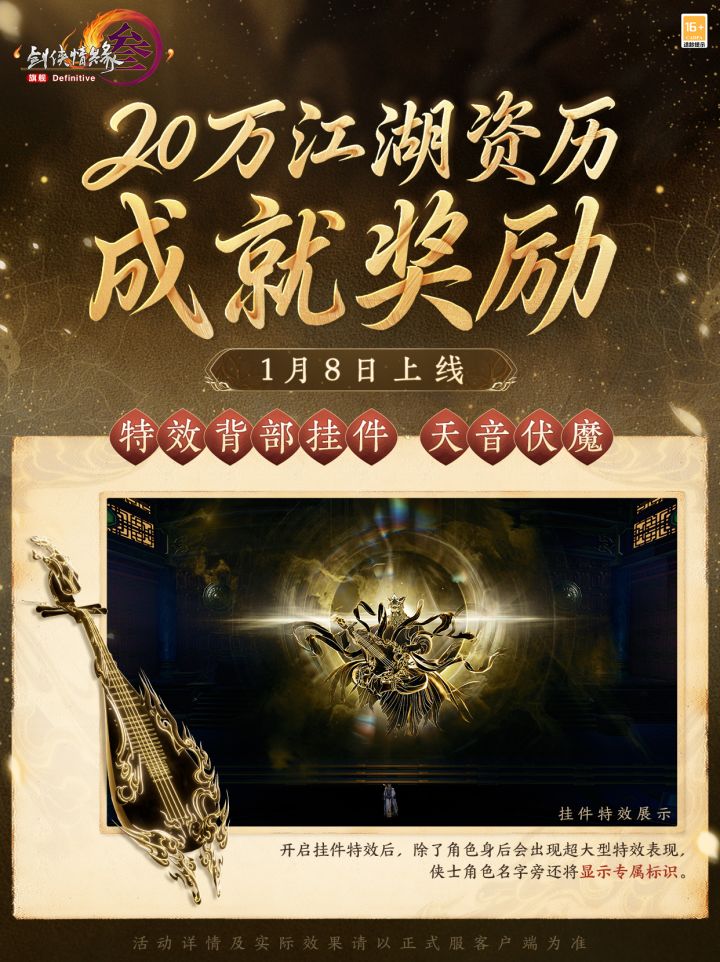 天音涤世 法相庄严 《剑网3》20万江湖资历奖励上线
