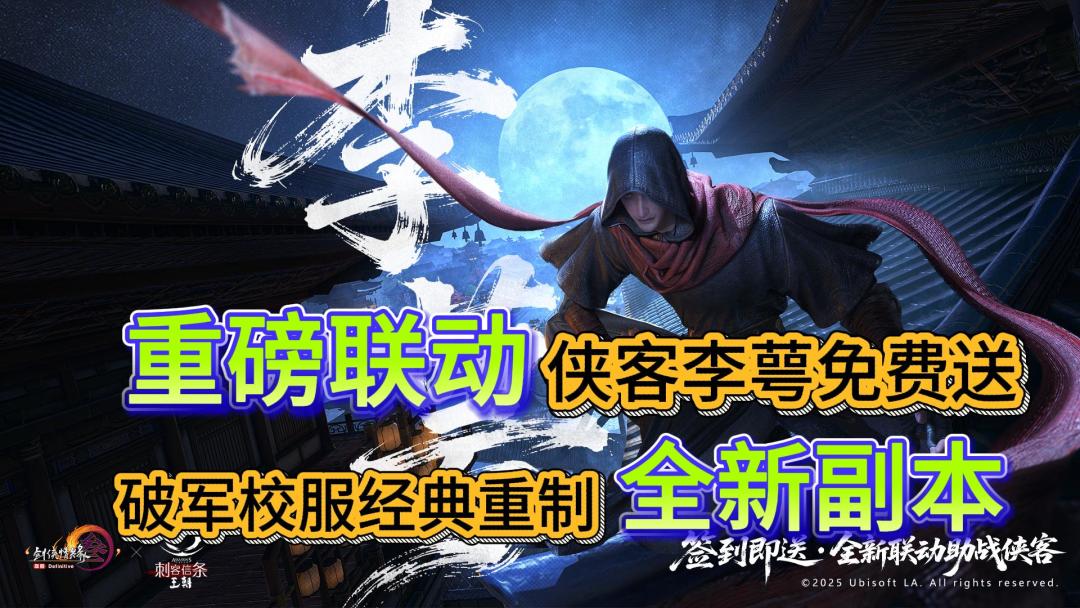 剑网3×刺客信条:王朝爆燃联动 新秘境+全民送侠客 赢麻了