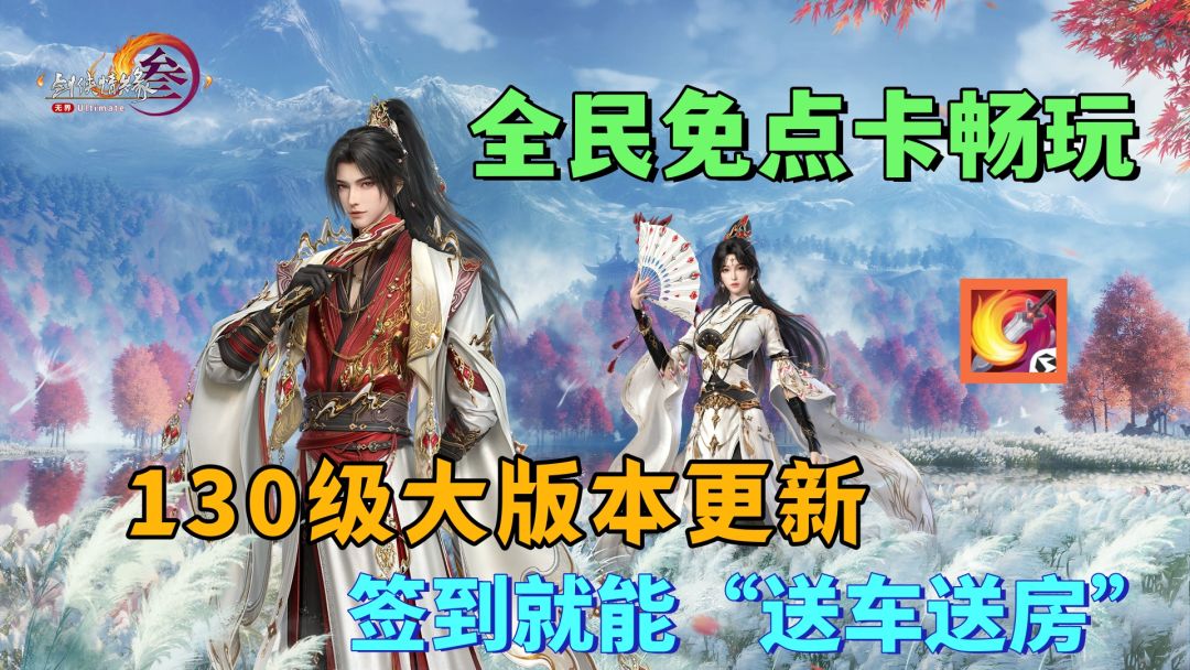 这才是【剑网3】该有的福利,全民免点卡畅玩,签到就送房和车!