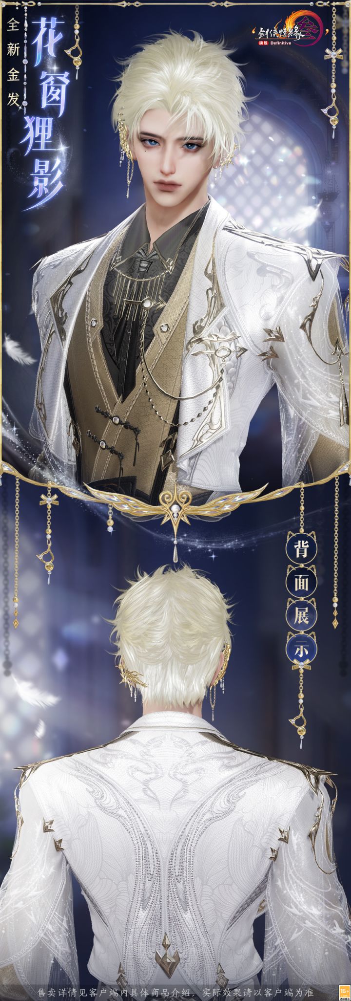 换上这个发型,让你的形象焕然一新,《剑网3》全新金发4月2日上线!还有新资料片新一轮测试精彩内容与活动,今日率先爆料! 全新金发“花窗狸影”短鬓裁霜色,金翎缀素丝。全新金发“花窗狸影”采用利落的短发设计,发丝微蜷蓬松,尽显率真灵动。玲珑精致的羽翼和冠冕,或轻栖发梢,或缀于耳侧。金发质地细腻顺滑,闪烁温润光泽;金饰雅致、珍珠莹润、轻纱朦胧……三种材质点缀其间,结构分明又相互映衬,在勾勒视觉层次