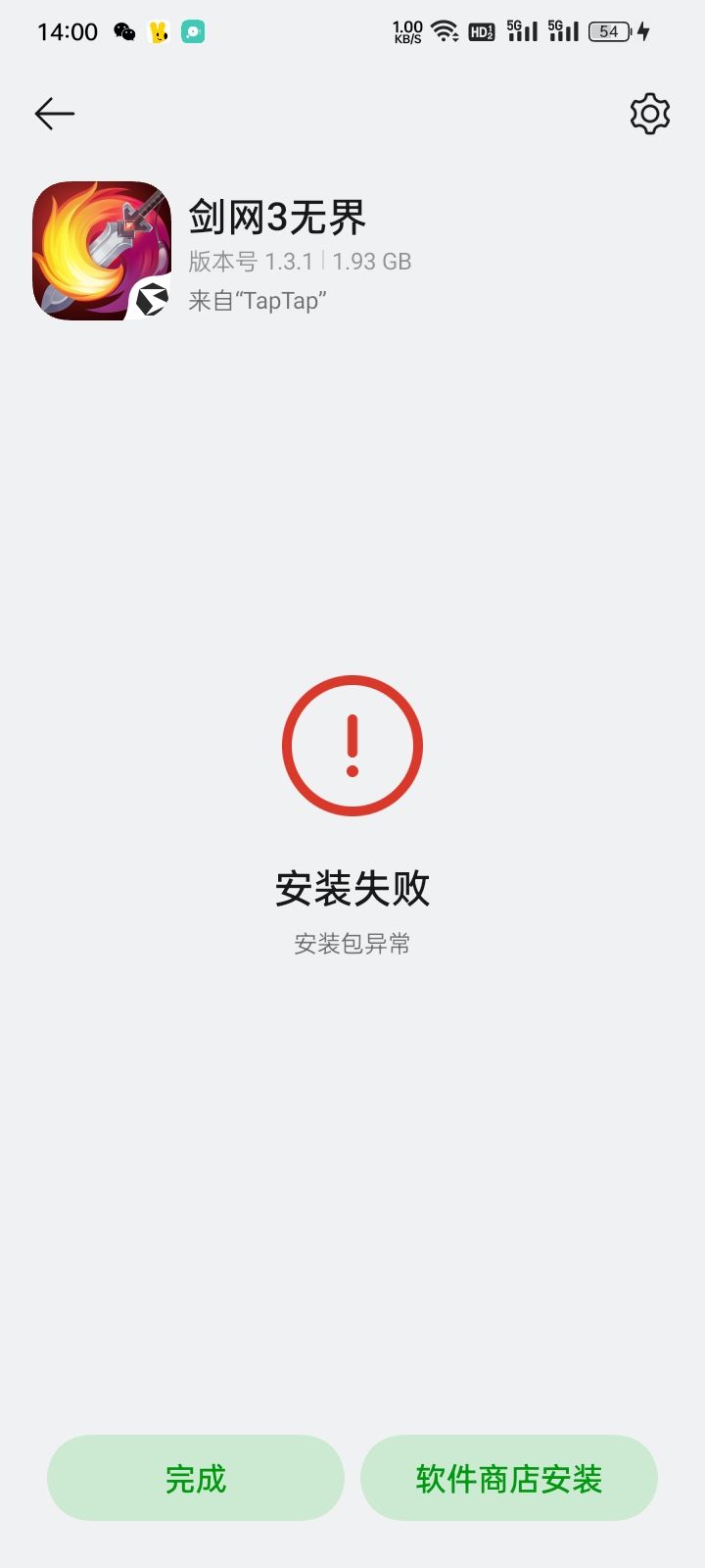 下载更新后安装异常