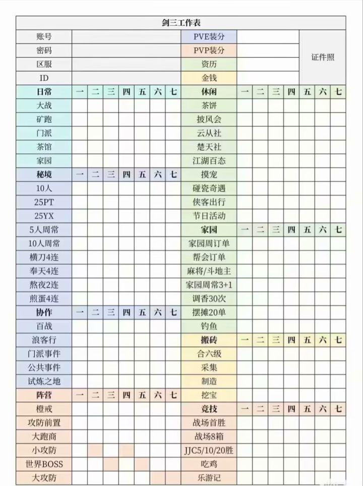 剑网三工作表