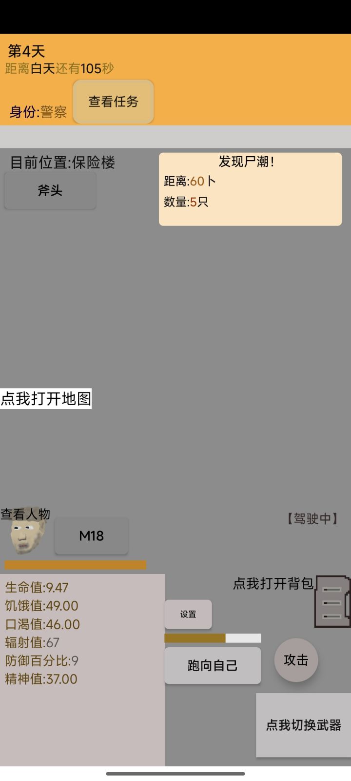 是tm恶心,一堆bug,拾取物品时不时卡死,超市扩展仓库,材料消耗了,但没扩张,特别是游戏设计,我开的简单模式+盲人模式,是最低难度的了,打尸潮那,才第三天,就有2-300个僵尸,我556子弹才40,得靠不停的sl,将僵尸数量弄到最低也要140个左右,这就算了,我去耍子弹,第四天才刷了20个,现实中用了两个多小时,不停的sl,因为天数越往后僵尸,越多,后面我也受不了了,我直接就开打,比较难得是你斧头武器40的攻击距离,僵尸30的攻击距离,只有10的拉扯空间,很容易一下被打残,木板那些攻击距离是长,但真没伤害,好,不就是难拉扯嘛,我多拉扯几道,熟练了+运气好,总能成功,但是,最恶心的来了,两次!两次!每次我都快打赢的时候,您猜怎么着?直接给你卡死!!!以为是你之前花时间不停的sl低僵尸数量,不停尝试去拉扯全部作废,md,要不是一直想把这个剧情过了,我tm早不玩了,而且之前看设置里说有黑商和可以和幸存者交易的我是毛都没看见,而且搜索极画时间,就是恶心人拉长你的游戏时间,大逃杀模式,我开的盲人模式,一进去光搜物资就卡着了,一直不结束。总得来说,这个除了玩法上还行,其他都是一坨半成品