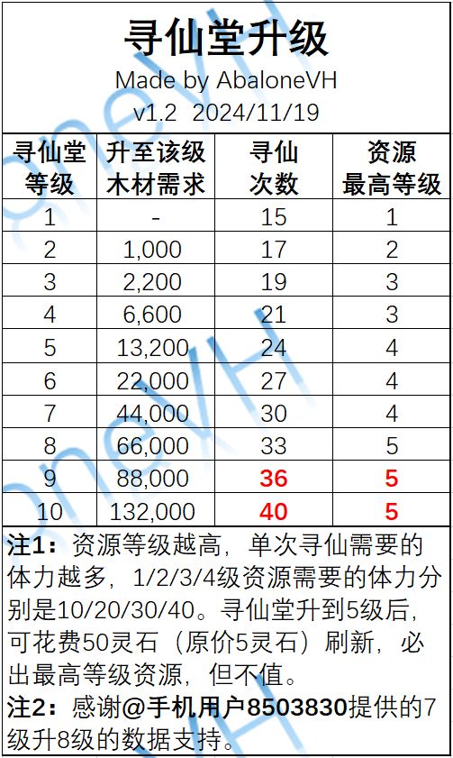 个人在游玩过程中整理,数据有限。红字是猜测的数据,欢迎指正~ 信息/攻略分享汇总https://www.taptap.cn/moment/605175129328061635 更新日志 2024/11/14 v1.1 更新了8级寻仙堂升级信息 2024/11/13 v1.0 初版