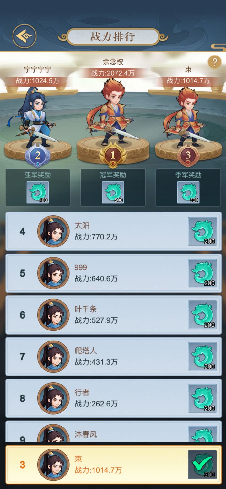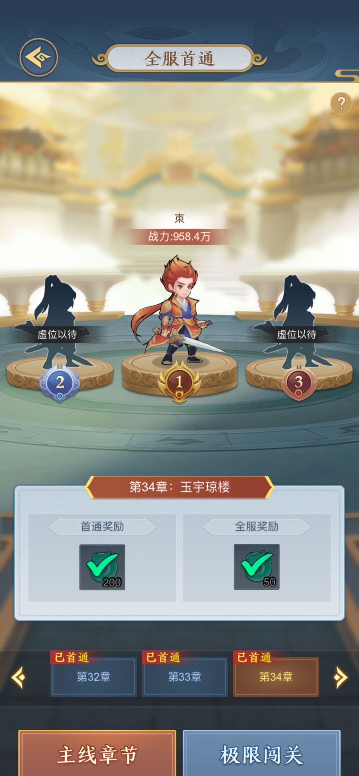 进入炼虚期后调整了下装备立刻挑战34章,也是非常荣幸拿到了第一!也是第一次拿到首通榜一,可能大佬们不屑于首通让我钻了空子斜眼笑战力目前来到了第三,虽然肯定会被后面的超,但是无所谓,现在也是开始囤票了,肯定要屯好久。目前开服第八天达成1000万战力,也顺便纪念一下酷。修仙之路,你我共行大笑