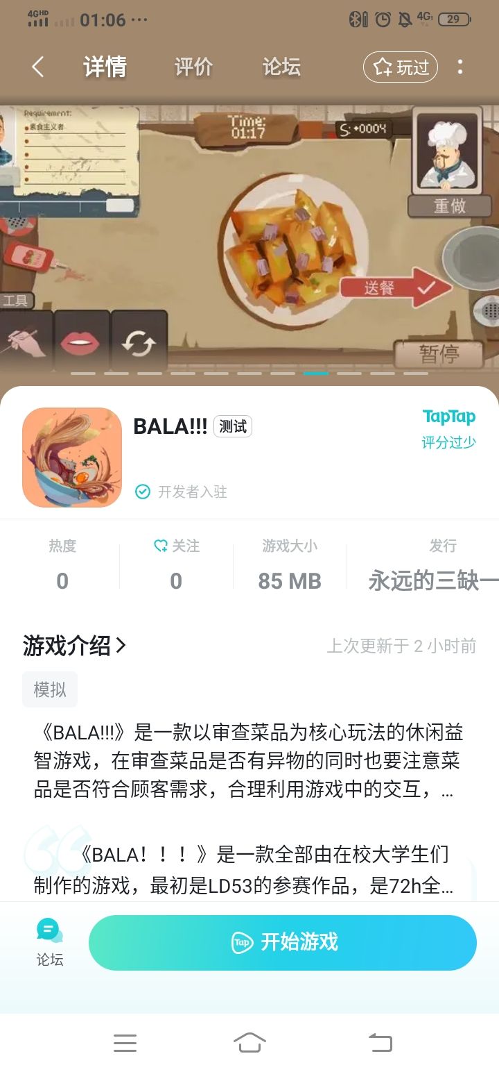 画风很好看,玩法有点拉,就是判断饭能不能满足要求,可玩性并不高,不会随着等级或者难度增加新玩法,即使作为休闲游戏它的可玩性也太低了