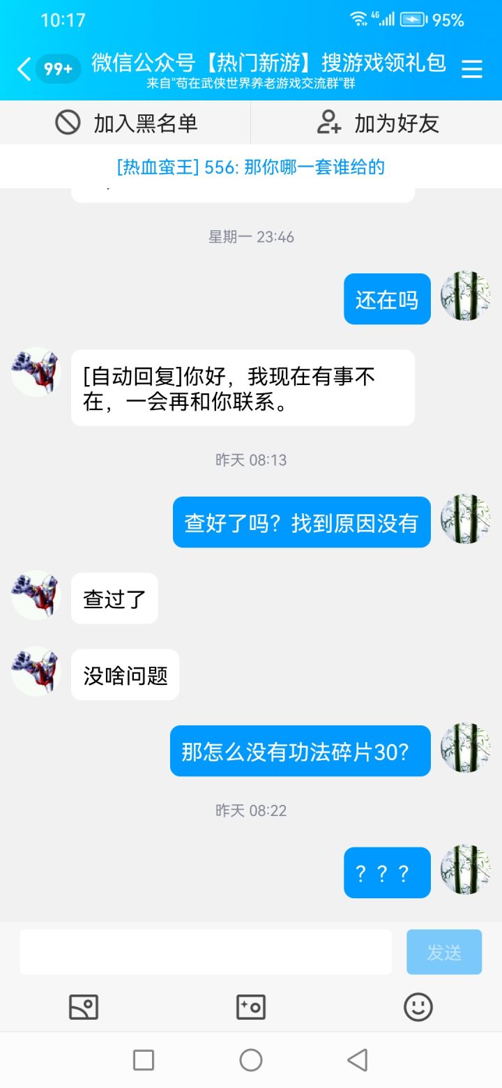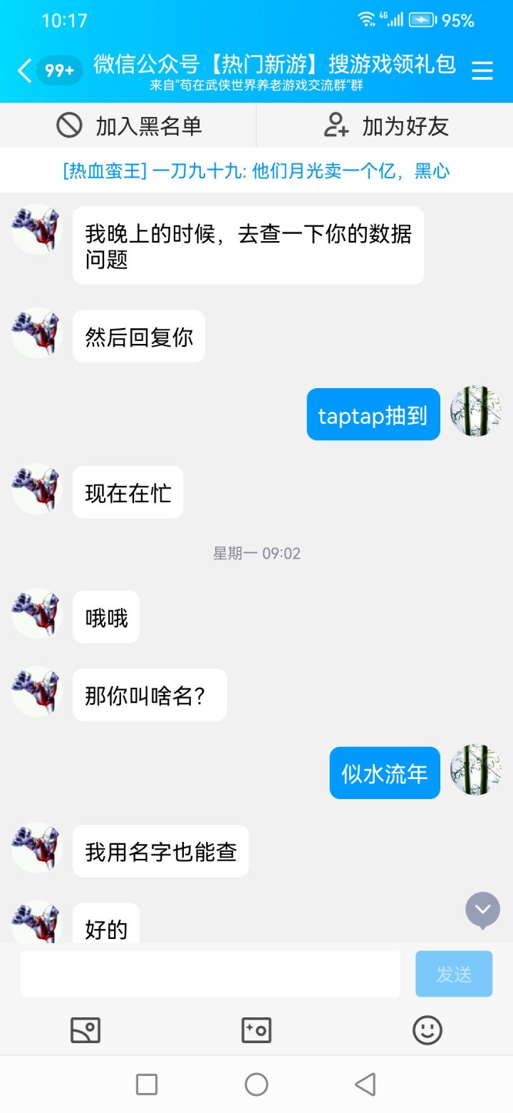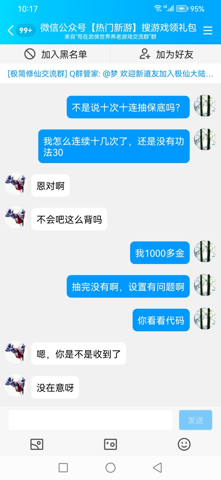 你为什么不更新不是说好了更新现在不更新是什么意思群里面大佬钱给你充你说买流量了我们相信了以为游戏会越来越好结果呢先不说我充了8-9000群里面大佬多少个2000多的有3-4个吧多少个买免广的20-30个吧别人流量2000一个月游戏开了6个月你厉害说结婚恐怕结婚都是假的吧结婚结束就是各种各样的理由一直到现在你凭什么这个样子对我们你不更新发点礼包码啊我真的你这种人没有信任