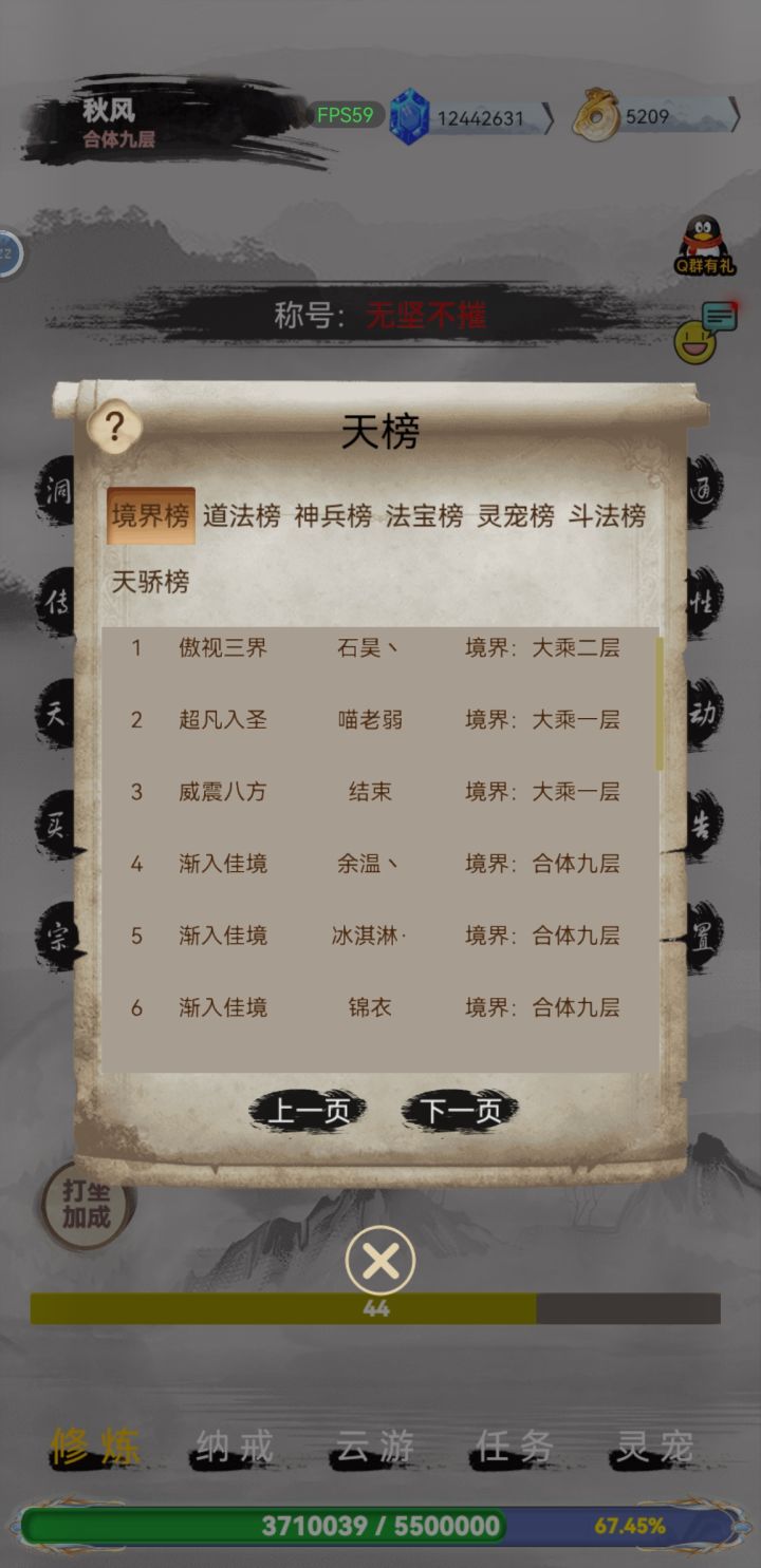 作为修仙迷,修仙类型的游戏本人也玩过很多款,综合来说这款游戏我从开区完到现在可玩性非常不错。目前老区新区都有号老区登仙二层,(没充值)排名在40内。新区合体九层目前排行前十。各位小伙伴有需要可以随时联系我。(特别注意:此款游戏完全免费,不氪金也可当大佬,白嫖也能当大佬)目前开放两个区:修真之路(老区最高人仙三层),仙路漫漫(新区最高大乘三层)。职业介绍:道天俗称奶妈(零氪党专用户)额外加百分