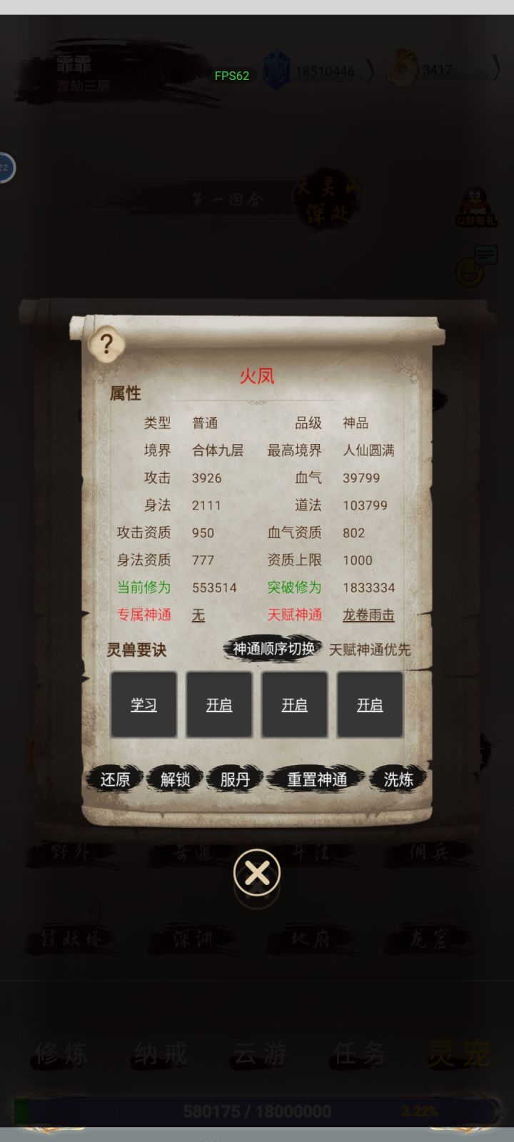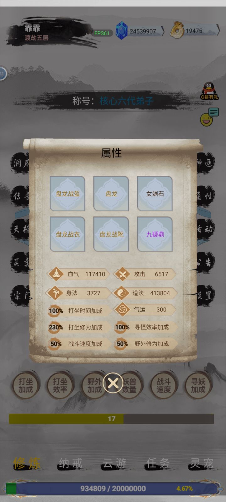 从刚开始到现在玩了大概近三十天整,下图是我目前的属性及天数,可以说这三十天玩的挺和谐,天天有大腿抱,不懂可以来蛤蟆教来请教群内成员,及教主等各种问题,都会为你一一简答!开发者小可也是特别热心,还会看情况更新各种不良Bug,除了这些还送新人各种领仙玉的码,还会引导你怎么玩等,不定时还有活动,一点也不枯燥,更不会逼氪,不氪也可以玩,欢迎各位小伙伴来体验,附送群号694216598来试试吆~