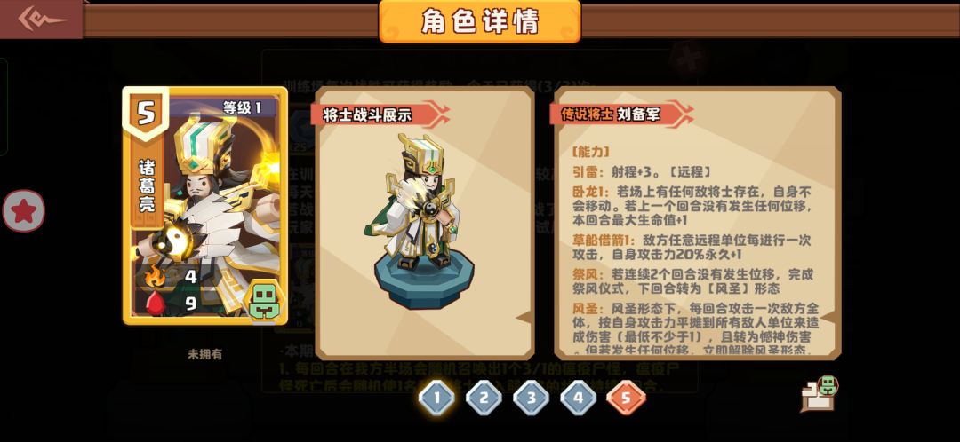小氪玩家一名,主力蓝9-10,紫5,金2, 万杯出头,从普通玩家的角度说说这次新武将诸葛。 诸葛 “求在帮我一次,延续大汉的国运吧”,技能组定位偏防守,稳扎稳打,很贴切诸葛亮六出祁山的故事。 个人觉得我是小奇兵出新武将的思路是对的,游戏开服这么久,不出新卡大家新鲜感快没了,万杯以上都是打人机,奖励也没。 卡片强度:⭐⭐⭐⭐⭐,几乎没有缺点,丢下来就能打防守,2回合后可进攻,攻击和血量都不差,更猛的