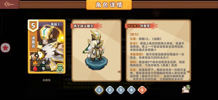 小氪玩家一名,主力蓝9-10,紫5,金2, 万杯出头,从普通玩家的角度说说这次新武将诸葛。诸葛 “求在帮我一次,延续大汉的国运吧”,技能组定位偏防守,稳扎稳打,很贴切诸葛亮六出祁山的故事。个人觉得我是小奇兵出新武将的思路是对的,游戏开服这么久,不出新卡大家新鲜感快没了,万杯以上都是打人机,奖励也没。卡片强度:⭐⭐⭐⭐⭐,几乎没有缺点,丢下来就能打防守,2回合后可进攻,攻击和血量都不差,更猛的