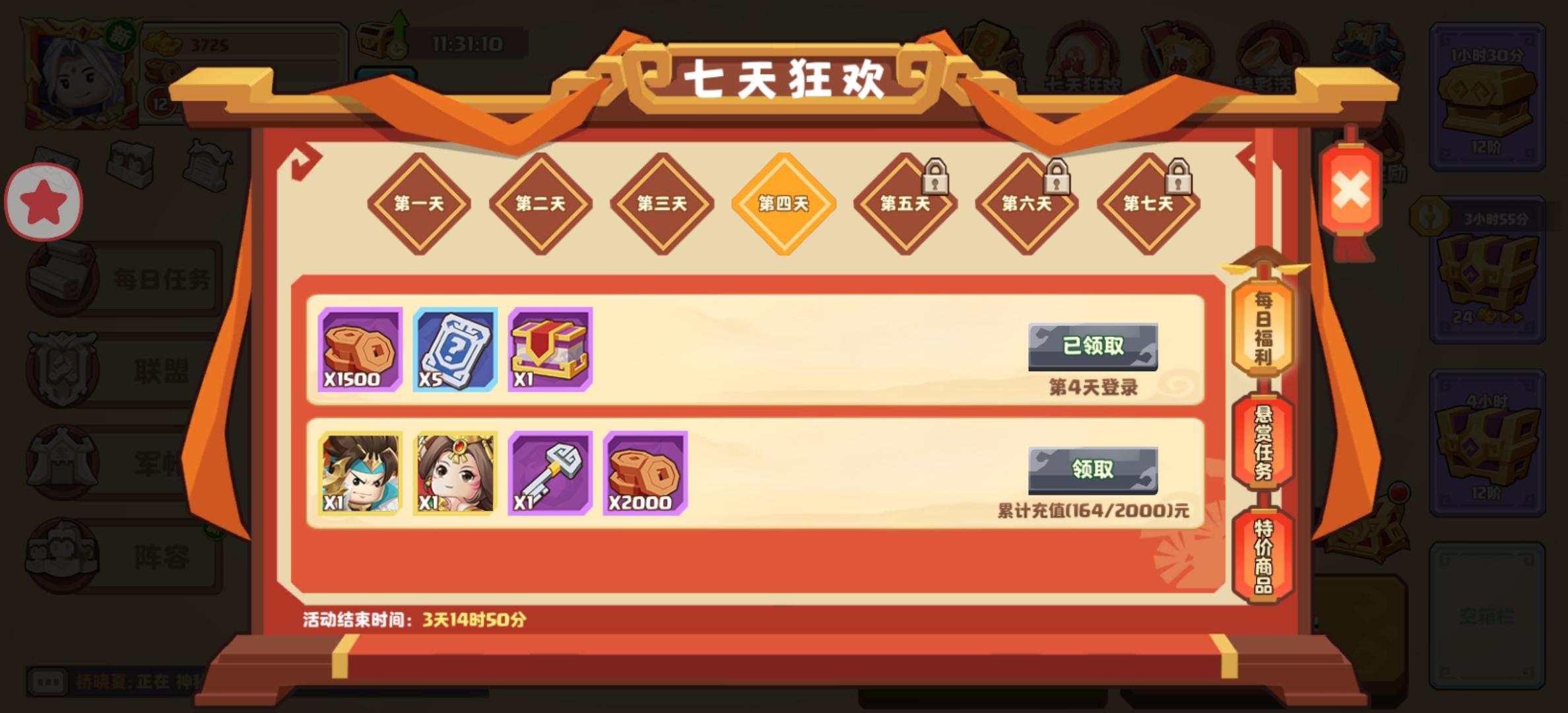 第4天早上,刚上5000,微氪玩家164