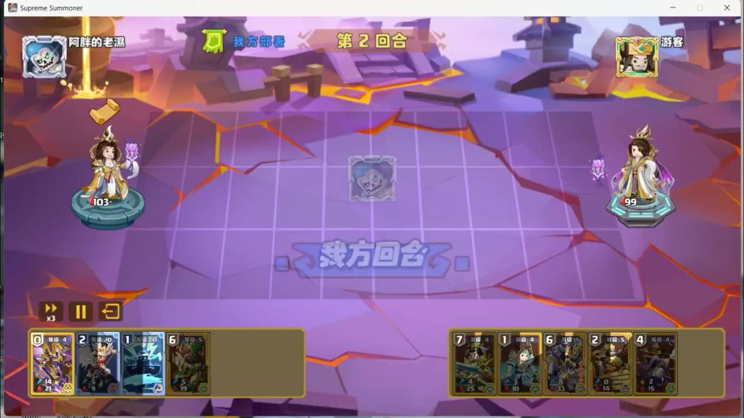 这一句极致快攻剑豪,起手小天胡,孙策+2猫,成功让孙策贴脸。后续持续抽到低费将士,每回合上兵增强压制力,以最快速度占领上中两路。本局孙策召唤的小鸟立大功,牵制了对面的所有警戒单位,同时对面大佬也没有抽到天罚,没有下牌空间,成功让我拿下了本局比赛。