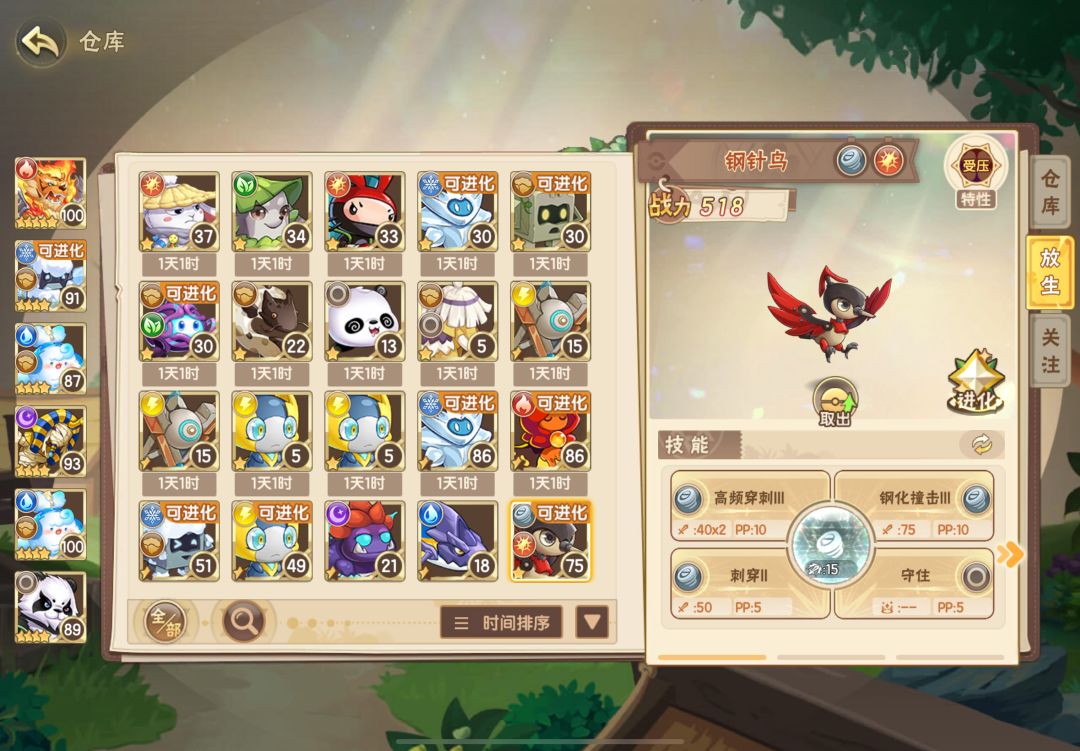 前言: 如题,由于小天的主号任务都做完了实在无事可做,心血来潮打算给零氪小伙伴们做一篇快速起号的攻略,避免之后的小伙伴们第一天浪费培养材料,话不多说,附上小天第一天主力的培养界面,先文字说明一下宝子们需要提前准备的精灵,视频在最下面哦 需要用到的有: 4只遗志特性哈尼熊60级、5只迟钝特性哈尼熊不需要升级(城堡郊外捕捉) 1只吸水特性圆葱骑士100级(风吟村庄园做支线任务解锁捕捉) 1只重力放射特
