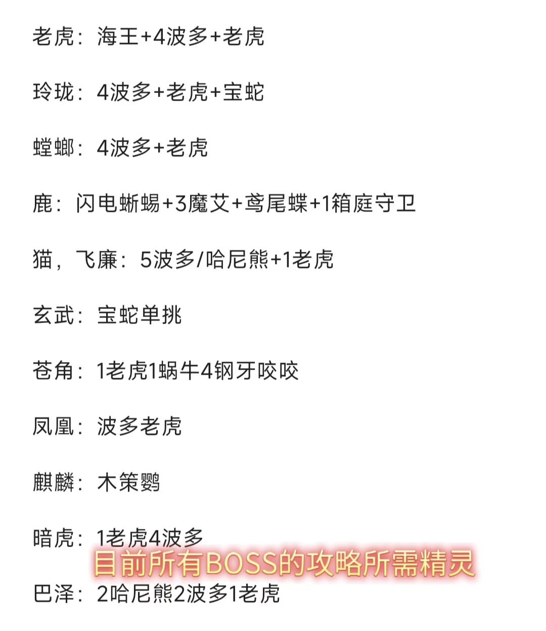 目前所有BOSS的攻略所需精灵,不要再盲目练宠啦!