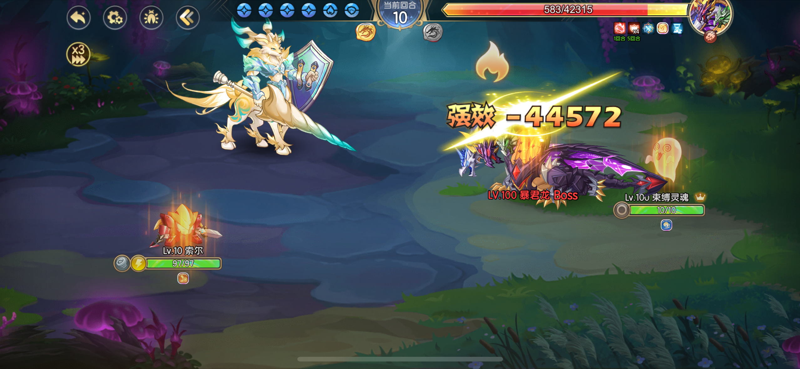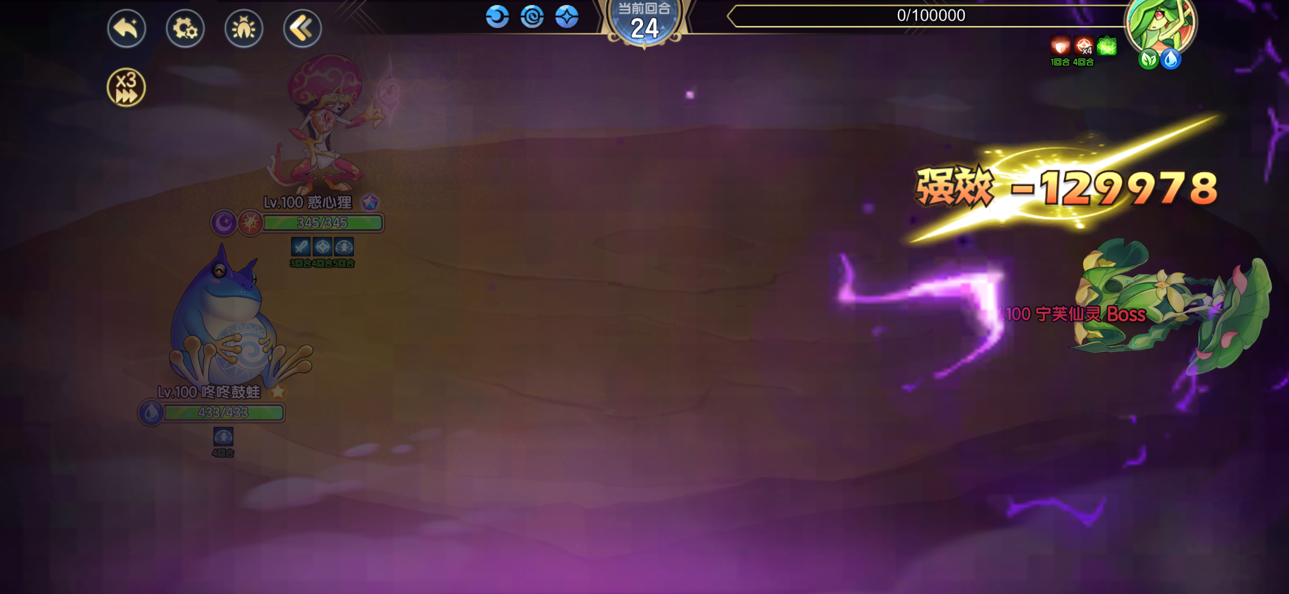 看网上一大堆攻略,要么明王要么蛇(一个氪一个绝版),不然就打得贼慢,所以自己改良了一下,基于b站某UP主用蛇虎打法改的(太晚入坑没蛇),配置极低,只需老虎练满就行,老虎圣灵可以随便带(带困兽是因为拉的高)但其他按图上的带,别乱带,星魂和潜能除了老虎,其他的都没拉,不过你们可以拉一下,会更好打打法 开局两草灵速射,老虎站中间战意,然后上两青蛙,第2回合上面那只放大招,其他的守住,第三回合上木马开狂