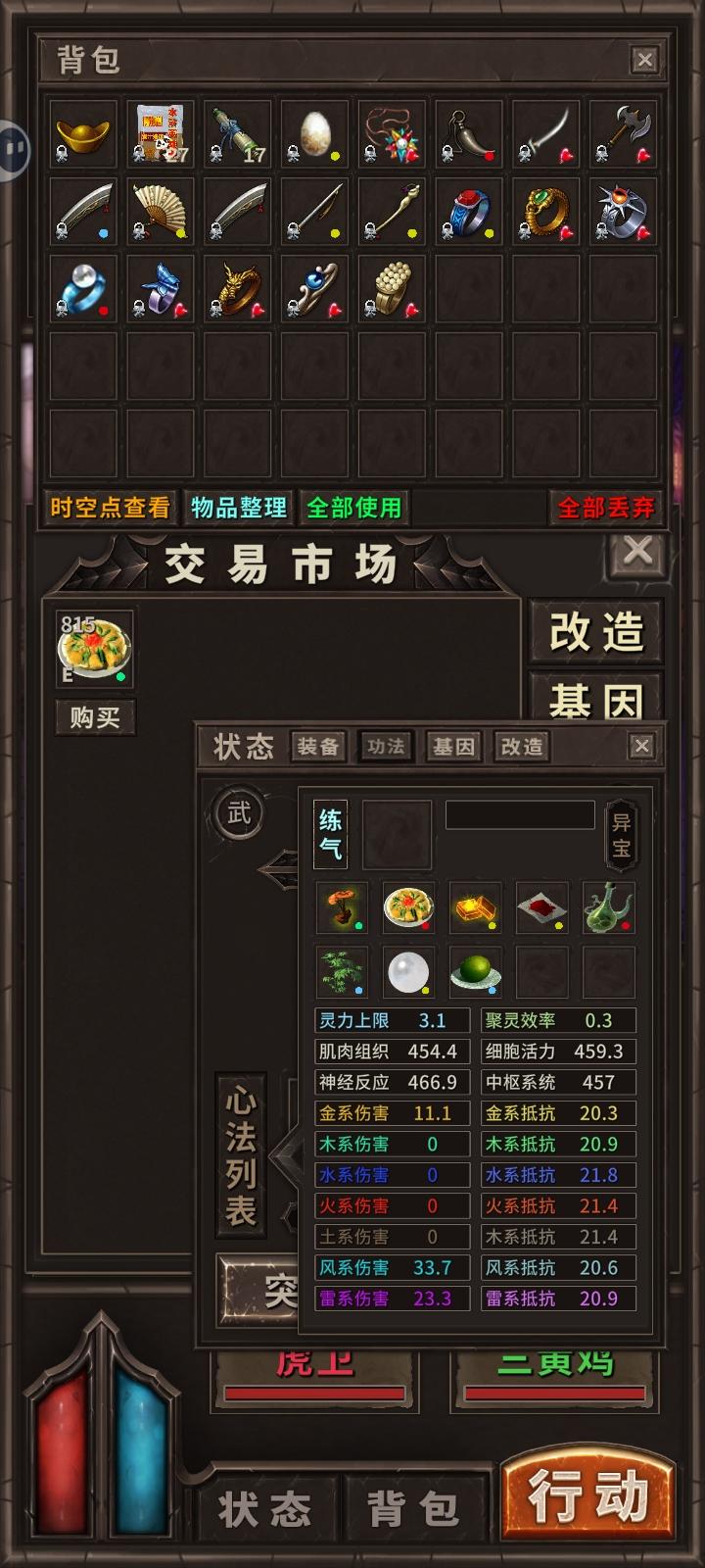 后面的数字是推荐技巧。功法入门详见版内其他人的攻略。大部分功法都试了一遍没找到遗迹的进入条件。金丹的第十个异宝冒似得等下次大更新去商店刷。