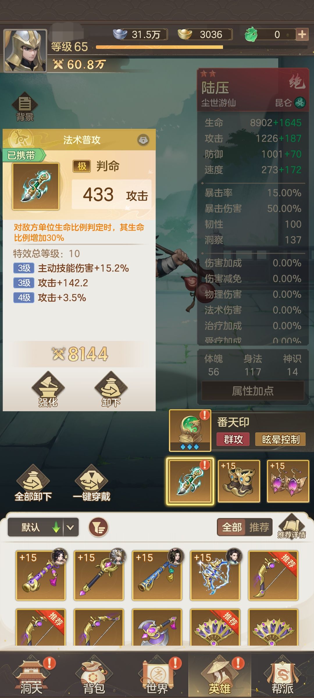 刷不过副本或者卡主线时,别忘了强化装备!#幻唐志洪荒现世 #游戏攻略 #攻略 #