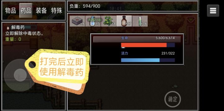 打王打完毒王后提交任务,然后忘记拿药了,直接就去打下水道了,结果中毒后发现没药了,赶紧回去,但还是晚了一步。废了,好像这个档被我玩废了,呜呜呜