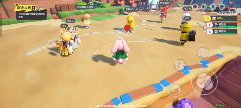 海面上铺开擂台,耳边时不时响起泡泡爆炸的声音。海风呼啸而过,大战一触即发...... 今天星妹给大家带来的便是泡泡大战玩法中的【四叶】地图啦!在【泡泡大战-四叶】中,星宝们需要在不断下落收窄的四叶形擂台上展开泡泡对决,保持体力、站到最后且不掉落水中的星宝即可获得最后的胜利。 游戏一开始,星宝们会四散出生在地图的四个角落。星宝身边显示着红色的血条,一共三格,每被泡泡击中一次掉一格,三格全部掉完就会