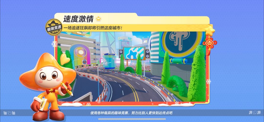 在高楼大厦间穿梭,在霓虹闪烁中起飞,在追逐狂飙中感受速度与激情! 今天星妹给星宝们带来【极限竞速】玩法中的竞速地图——【速度激情】。这张地图中玩家只需要在多变的赛道上极速奔驰,甩掉所有对手,超越自身极限后抵达终点即可取得胜利~ 比赛开始前,画面上黄色圆圈所指的是氮气加速,通过漂移或腾空可以获得。这可是飙车竞速时的关键助力因素! 氮气加速分为两段,按钮是蓝色时会获得小加速,变成黄色时则会获得大加速