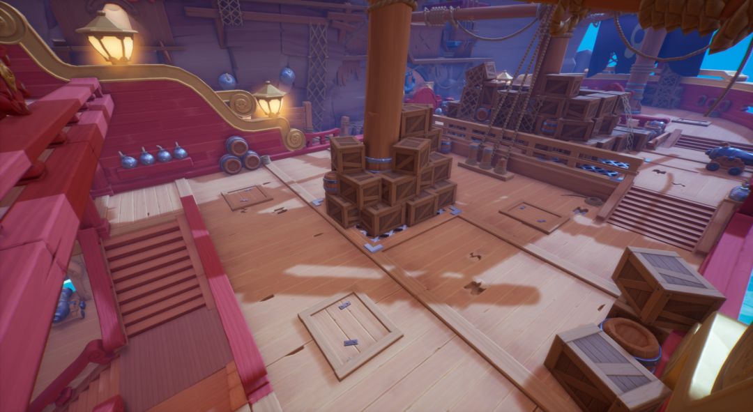 听说了吗? 卧底行动要出新地图啦~ 星妹第一时间搞到了 新地图【基地】的场景设计稿 星宝们快一起来看看吧! 从这张场景设计图来看 新地图基地的主体部分应该是一艘大船 一看到这个场景 就不由得想起电影加勒比海盗 海盗之间的勾心斗角 结合卧底行动玩法 星妹已经脑补出了好多小故事 我们接着看一些【基地】里的地图细节 甲板到船舱的楼道较窄 很适合卧底布置陷阱 持枪的警卫星宝可要小心了 一旦不小心在狭窄