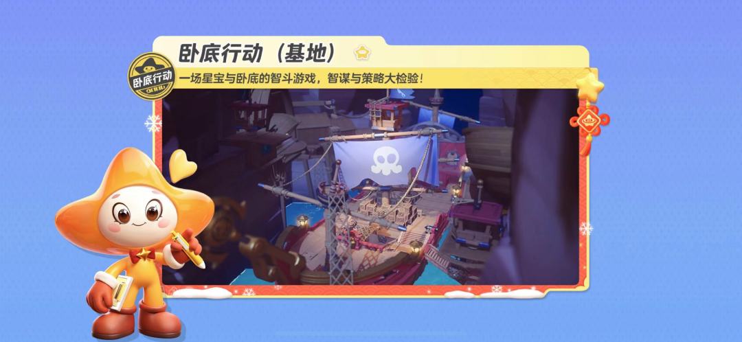 茫茫大海之中,海盗基地里正在上演一场星宝与卧底的智谋大考验,究竟如何才能成为最后赢家呢?贴心的星妹已经火速整理好本次【卧底行动】上新的基地地图玩法攻略啦!快拿着小本本,跟星妹一起去康康吧~ 卧底行动模式主要由3名卧底,2名警卫和5名平民星宝构成。在规定的时间内,卧底阵营需要淘汰所有星宝,而星宝阵营获胜需要耗尽时间或淘汰所有卧底。 掌握获胜条件后,接下来就需要充分了解地图结构,利用地形加持获得胜利
