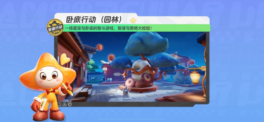 听说星宝们最近在新上线的卧底行动【园林】地图玩得不亦乐乎!你瞒我瞒,谍影重重,好不刺激。星妹火速研究出了这张地图的制胜攻略,话不多说,一起来看看吧! 制胜第一步,星宝需要先搞清自己的角色定位,再根据获胜条件开始行动哦~卧底行动里有卧底和星宝两股势力。在规定时间内,卧底需要隐藏在人群中淘汰所有的星宝,而星宝阵营中也存在【警卫】的身份可以淘汰卧底,卧底时间耗尽或被淘汰出局则星宝阵营获胜。介绍完了玩法规
