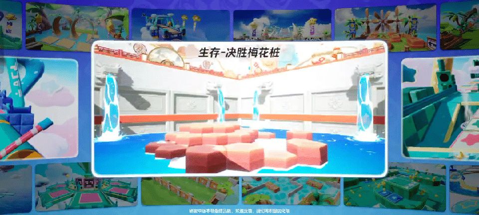 SOS!星宝们都被困在巨大的水池里啦!水位不断上升,如果星宝们无法在脚下的梅花桩被水淹没前找好下一个落脚点,就会通关失败!这张生存赛地图【决胜梅花桩】看起来并不难,实际玩起来却没有那么容易~ 【决胜梅花桩】是一张国风地图~比赛开始时,星宝们会随机出现在水池中央高低不一的朱红色梅花桩上,随着时间流逝,水位会逐渐上升淹没低处的梅花桩。 场景设计和玩法虽然简单,但不要小看了这个地图的难度哦~星宝们需要眼