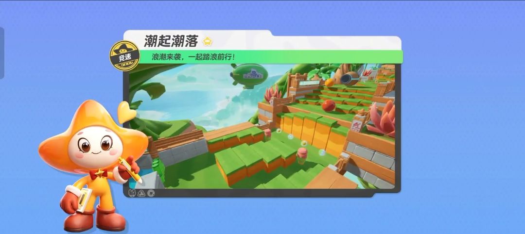 准备好和星妹一起乘着激流和传送带,来一场刺激的竞速比赛了吗? 竞速地图【星潮速递】来啦!在这张地图中,星宝们需要在规定时间内穿越水上赛道和陆地赛道,躲避各种障碍,最终抵达终点,取得胜利! 那么接下来就跟随星妹的脚步,一起在【星潮速递】中体验水上漂移,顺着水流跟着箭头的方向全力前进叭~ 离开起跑点,首先会进入一段上下起伏的水上滑道,滑道上分布着许多海绵木桩! 水上赛道速度很快,星宝们要注意躲避穿插