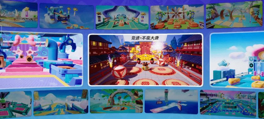 灯火辉煌的长安城里竟然险象环生?城门一道道打开,障碍也一层层升级,滚动的大绣球、摇头晃脑的唐风不倒翁、上下起伏的灯笼阵......最危险的是赛道上随时会炸开的鞭炮! 有勇有谋的星宝们,你们能在【不夜大唐】这张竞速赛地图中拔得头筹吗? 进入【不夜大唐】地图后,首先映入眼帘的是远处层叠的远山、红墙青瓦的楼阁、以及闪耀的大烟花和小呲花。这一切让人仿佛穿越时空,置身于盛大的上元佳节中的大唐盛世中~ 星宝们