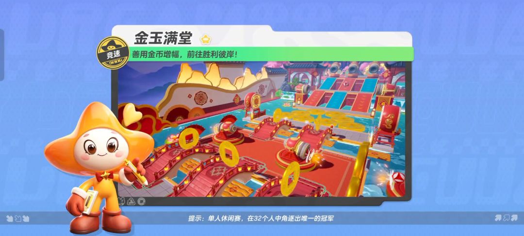 岁末将至,喜迎新春,在这个辞旧迎新的时刻,怎能少了一份新年的元素呢! 最近更新的竟速地图【金玉满堂】,便是一个充满浓浓年味的地图。那喜庆的红地毯从头铺到尾,金灿灿的金币点缀其间,璀璨的烟花在空中绽放,让人仿佛置身于一个欢乐祥和的新年盛宴中。 话不多说,速随星妹一同踏上【金玉满堂】的旅程,感受那份独特的年味气息吧! 游戏开始后,首先迎接我们的是小桥流水,3座小桥中央各放置了一枚大金币,星宝们可以从