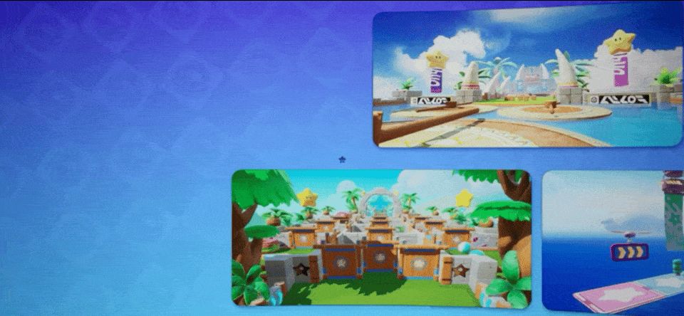 星宝们在竞速赛中一定有过这种经历,一不小心脚下踩空就跌落天际,只能回到存档点从头再来。【变换平台】就是一张很容易踩空的竞速地图,在这张地图里,星星地板会随时变换状态,时隐时现! 不过别担心,只要掌握规律,多变的平台也只是小菜一碟~想要顺利通关的星宝快来看看星妹整理的通关够略吧! 正如其名,【变幻平台】的整个赛道是由虚实变换的平台构成的。 站在备战区远远望向前方的关卡,星宝有没有发现一些星星地板在