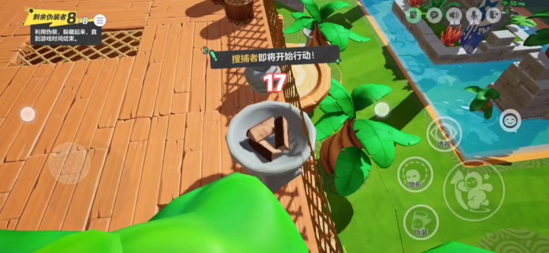 星宝们今天参加躲猫猫排位赛了吗? 伪装者与搜捕者之间共演的大戏 《他逃他追,他们都插翅难飞》现已上映! 星妹看完也迫不及待想加入战局了! 于是跟着大神学了几个 “给搜捕者添堵的小妙招” 星宝们,快来抄作业吧~ 经常玩躲猫猫模式的星宝 对这张地图肯定特别熟悉! 它的特点就是总面积小 不方便伪装者隐藏 不过我们依然能在其中找到不错的点位 来到木屋二层有渔网和罐子的地方 从这里跳到后方的平台上 之后,再