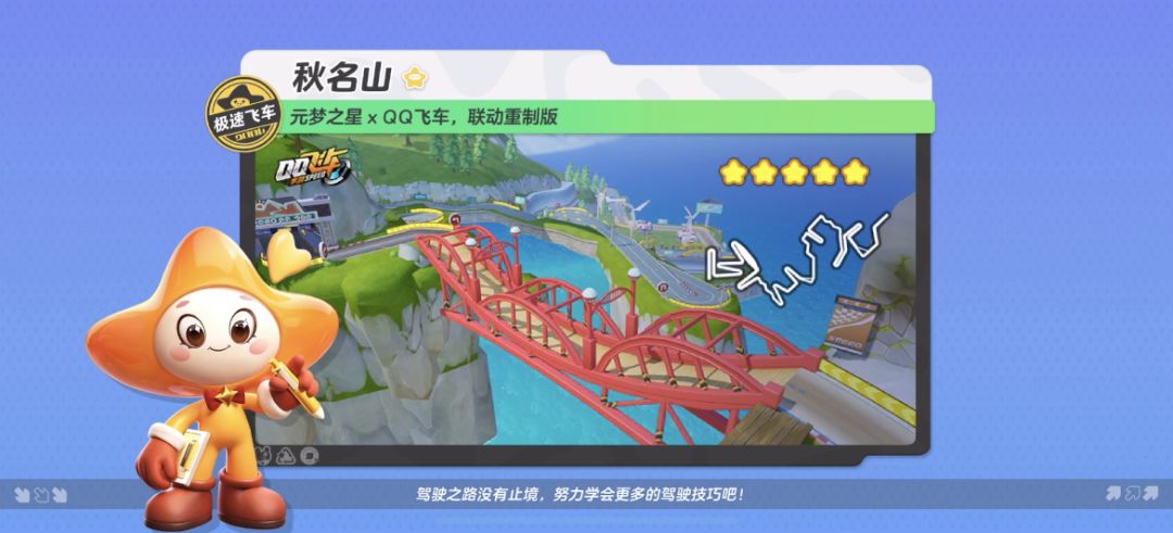 《头文字D》相信是很多星宝的儿时回忆。在崎岖的山路上一路漂移,开最快的车,赏最美的景,谁不想成为最帅气的秋名山车神呢! 最近元梦之星在与QQ飞车联动的【极速飞车】模式里上线了【秋名山】联动地图!在这张地图里星宝们需要利用漂移技术,在规定时间内通过多个极速弯道的考验。谁先到达终点,谁就取得胜利~ 接下来跟着星妹开启一场速度与技巧并存的赛车挑战吧! 刚进入赛场,点击左下角转换按钮可以选择星宝喜欢的操