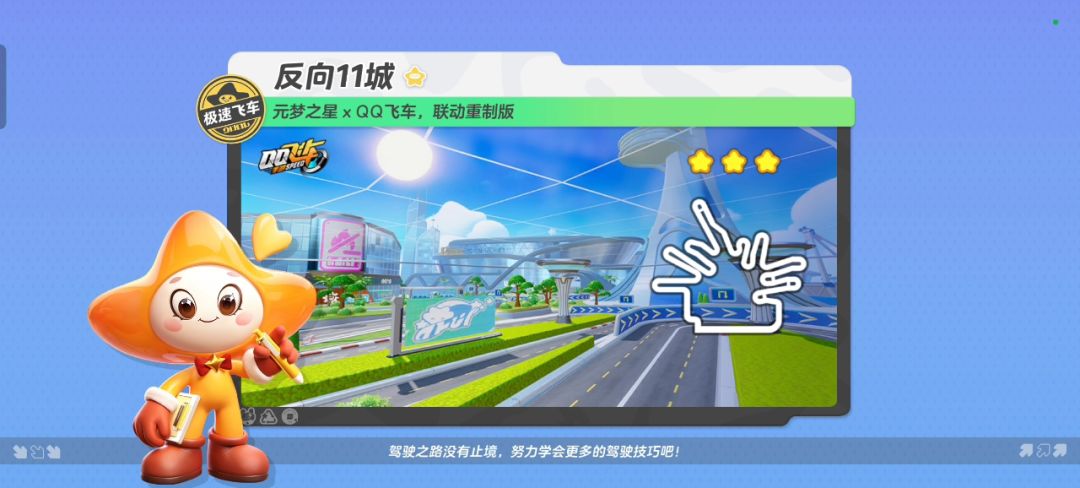 从另一个方向驰聘在11城的公路上,熟悉的城市风景,体验却完全不同! 今天星妹给星宝带来的【反向11城】是【极速飞车】联动模式中的经典复刻地图,星宝们需要在规定时间内驾驶赛车超越对手,施展车技,到达终点,获得最终胜利。 地图封面上的路线缩略图看起来弯道多多,快随星妹实地一探究竟叭~ 游戏开始,星宝们会先在准备区等待,在此期间,星宝们可以点击左下角转换键选择自己喜欢的操作模式哦! 冲出准备区,星宝们
