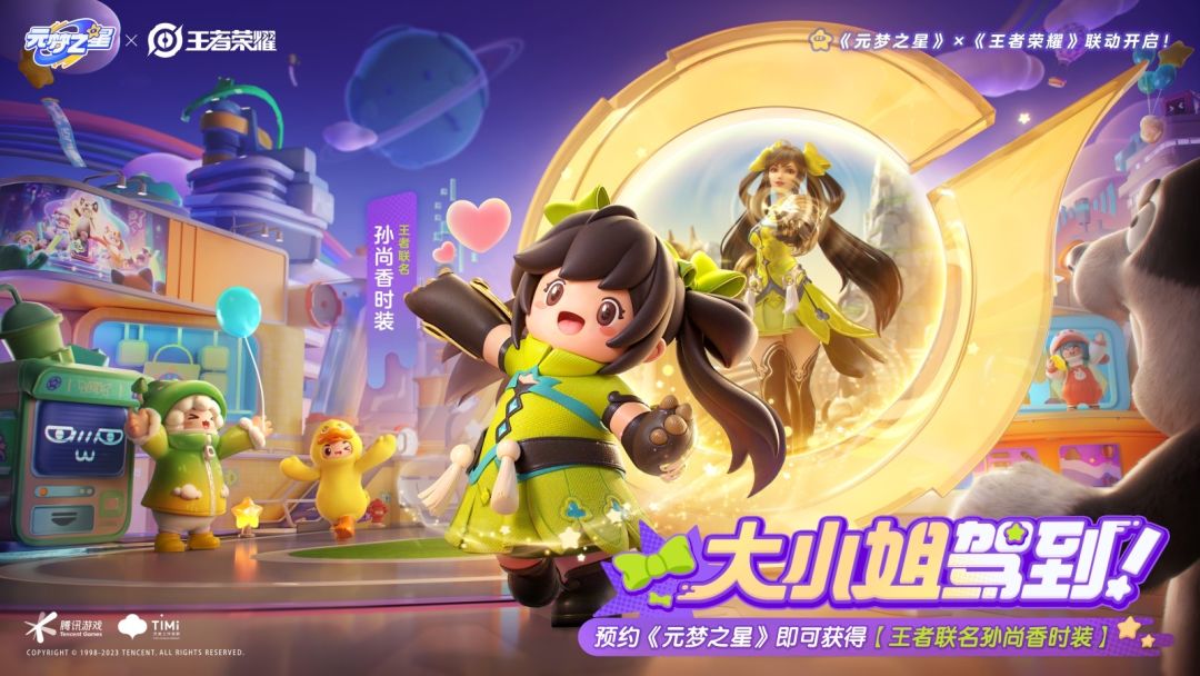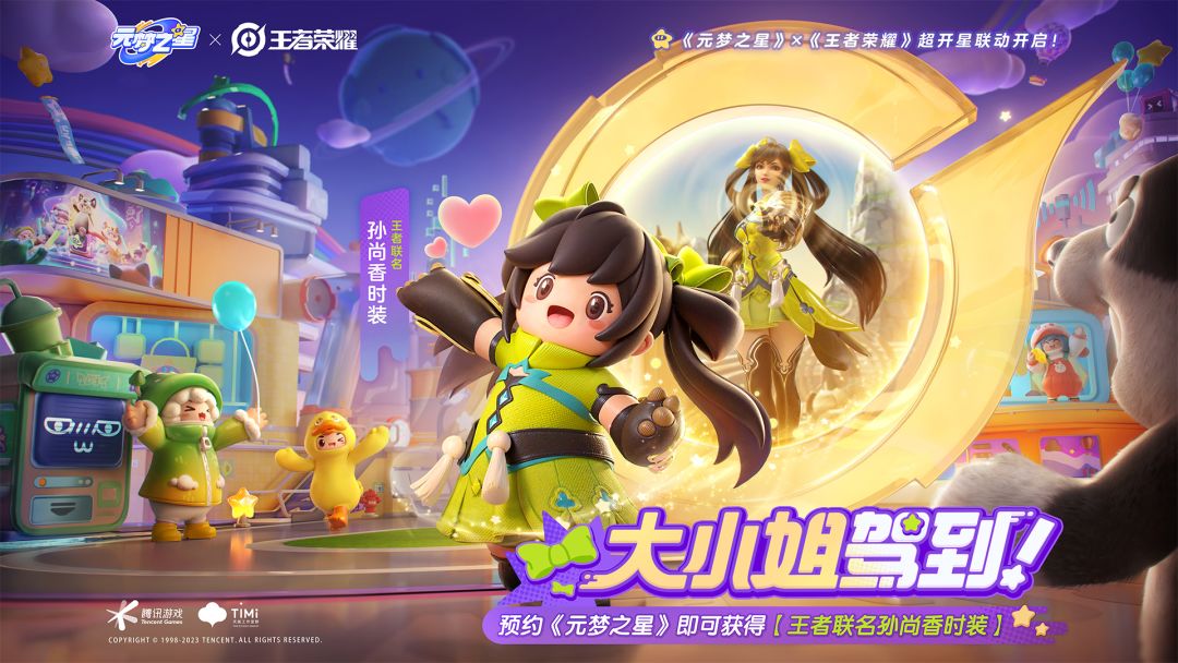 10月28日,由天美工作室群研发的乐园派对手游《元梦之星》,在王者荣耀“2023共创之夜”超萌亮相!“王者联名孙尚香时装”CG首次曝光,萌动全场。当晚,“大小姐好可爱”、“星宝版孙尚香好萌”、“大小姐驾到”成为直播间热词!现在,前往手机QQ搜索框、微信搜一搜,输入“我要孙尚香”,预约《元梦之星》即可获得这款萌版“王者联名孙尚香时装”。 梦幻联动CG首曝,孙尚香萌动全场 本次《王者荣耀》“202