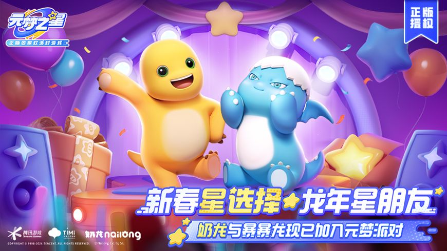 《元梦之星》x《奶龙》联动模式进行时~ 听说奶龙和暴暴龙在派对上玩的可开心啦~什么烟花弹、回旋镖、香蕉皮各种道具已经使的得心应手啦~他们2月3日就会过来跟星宝们汇合喽~星宝们快收拾收拾准备一起玩啦~ 一起吵闹一起大声尖叫才是真正的合家欢~星宝们新春记得来元梦合家欢,和奶龙、暴暴龙一起畅玩全新玩法,一起大乱斗,一起嘎嘎大笑~还有超多福利惊喜等待开启哦,一起抢红包,一起结交新的朋友,相信没有星宝会在元