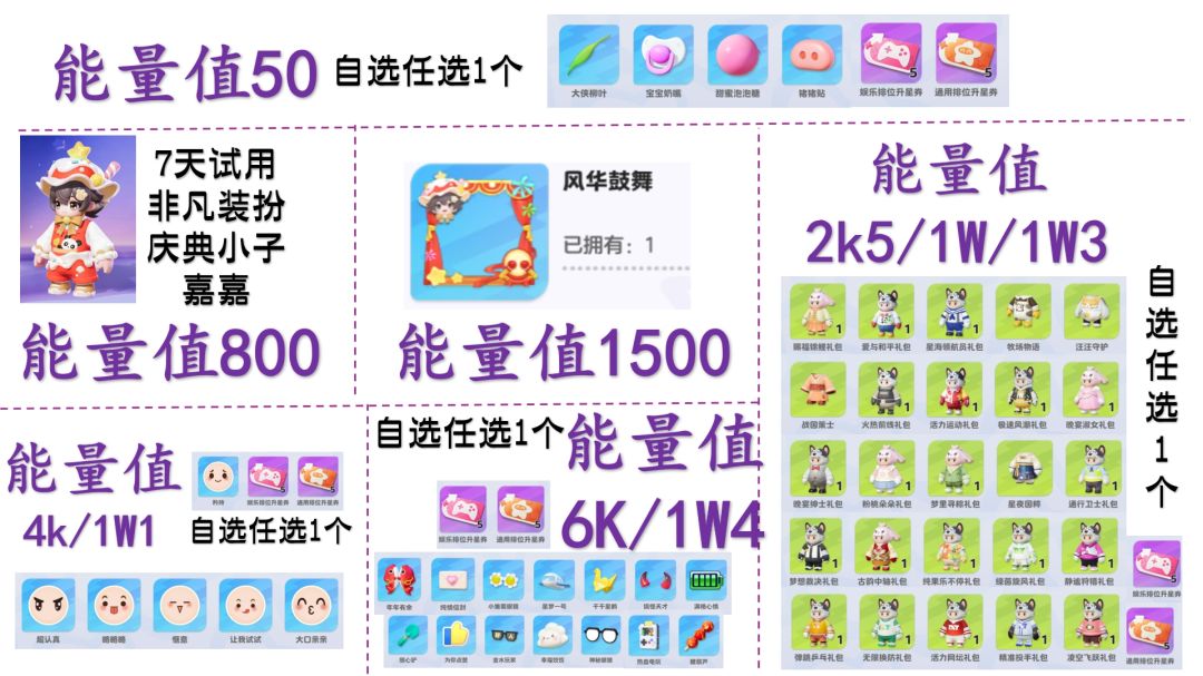大家在元梦之星“发现”页面中,能看到“百衣补贴”专属页面,百衣补贴季,换装自由,登录即送100抽,充能得能量值与外观奖励,充满必得全新非凡时装。有的星宝看迷糊啦,这里晓晓给大家理顺一下! 【活动简介】这个活动简单来说就是消耗“百衣礼券”,抽取能量值,获得活动下方的能量值达标奖励 【活动时间】9月30日-10月17日 【百衣礼券获取途径】 1.花笺觅巧思:9.30-10.13,共计100个,在星梦广