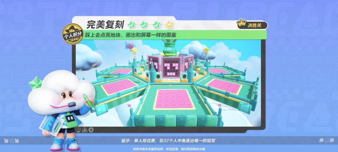 当当当当,欢迎来到——元梦之星地图攻略大课堂!这个栏目的攻略内容都是来源于星宝们的投稿哦,快来一起看看吧! 还在为排位赛竞技打不过而烦恼?还在因为8冲1的关键赛点翻车而拍大腿?又或是为决赛碰到刺客关卡而担忧?统统不要慌!元梦之星老师傅带你排位赛轻松圆梦冠军!进入决赛圈成功吃鸡不是梦!今天先安排一个刺客关卡【完美复刻】的通关攻略经验。 【关卡特色——踩亮地块,复刻图案】 关卡要求玩家在5X5的地板方