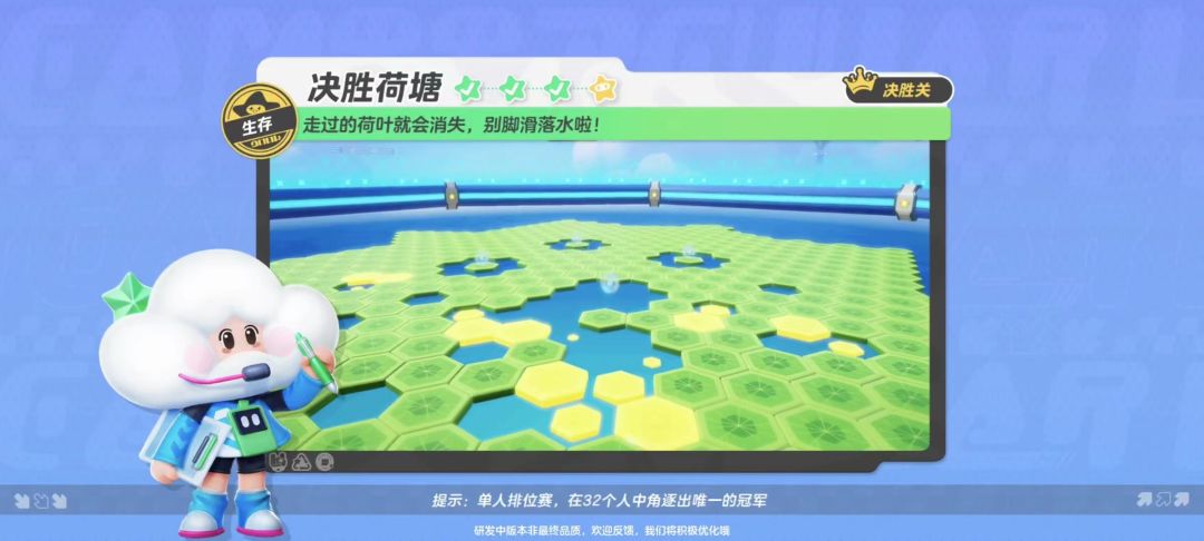 当当当当,欢迎来到——元梦之星地图攻略大课堂!这个栏目的攻略内容都是来源于星宝们的投稿哦,快来一起看看吧! 说起排位赛的8进1关卡,哪个关卡最让你记忆深刻?对我来说,许多排位赛关卡都有着其独特而新颖的关卡设计,给我留下了非常深刻的印象。但要说其中最深刻的,还得是“决胜荷塘”这个关卡。至于为什么对它印象最深刻呢?这么说吧,你见过谁的“跑酷”生存是在荷塘里进行的?快来听我解析“决战荷塘”这一排位“刺客