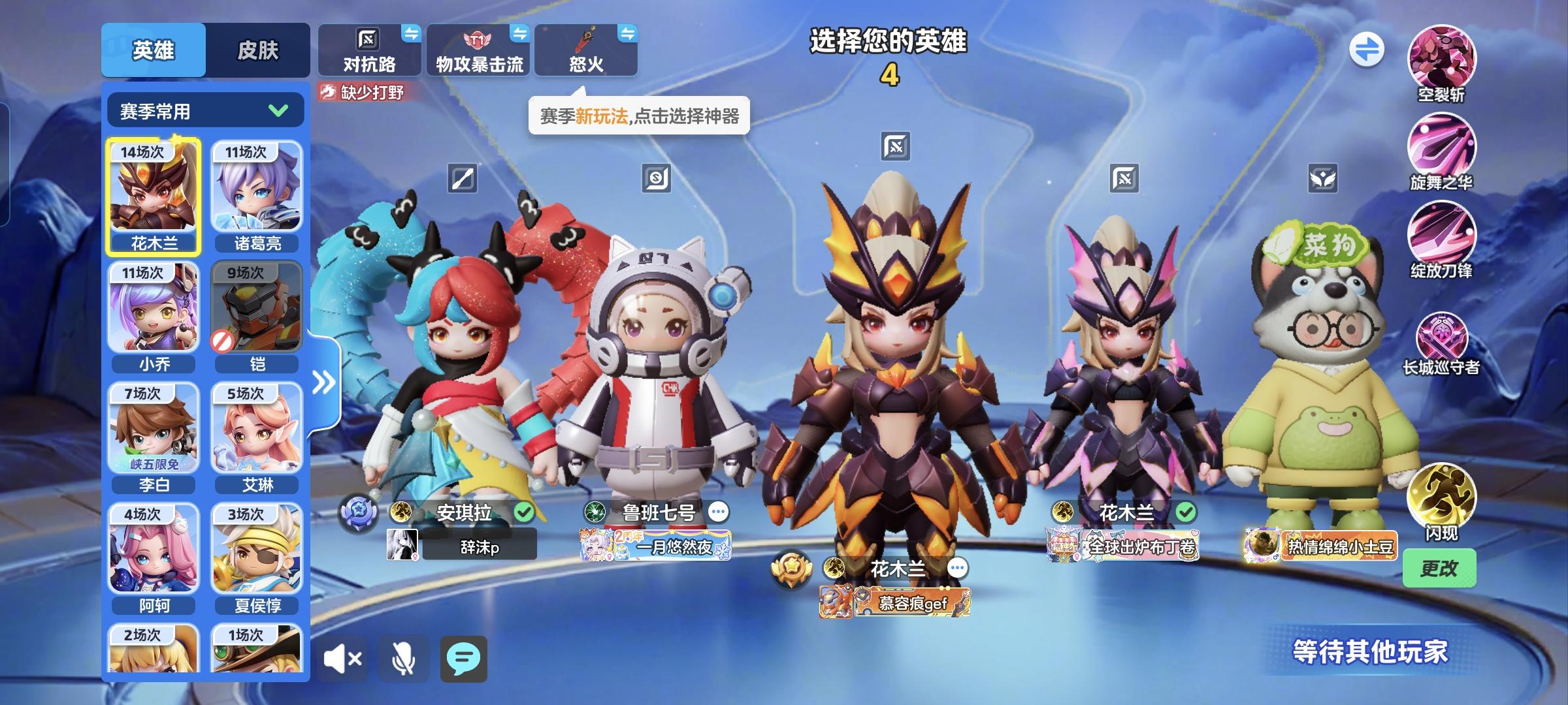 Bug太多了,选英雄居然出来两个花木兰,再切换英雄都没反应