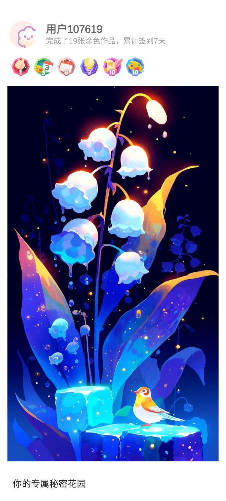 图像选择变得更多了,出现了头像框和个人主页,数字填色有点单一,但可玩性还是不错的,我最大的乐趣就是涂完色之后保存在相机里当其他软件的头像或壁纸