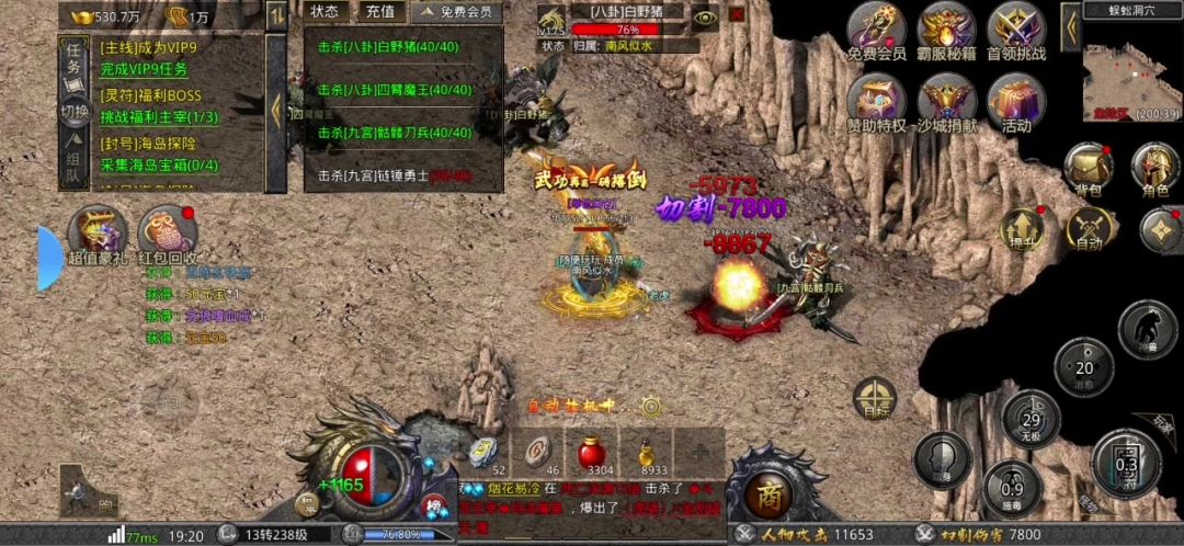 boss随便打,装备秒回收,注意别被大boss嘎了