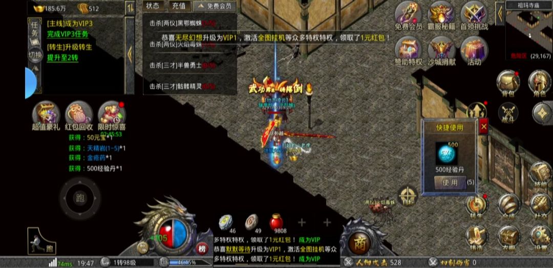 1要冲个宠物10块 2冲个自动检30 3灵符可以打boss掉可以白嫖